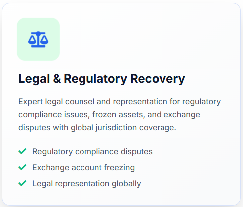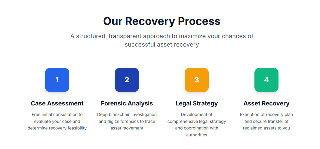 Advanced blockchain investigations, digital forensics, and legal expertise to reclaim your stolen or lost cryptocurrency investments.